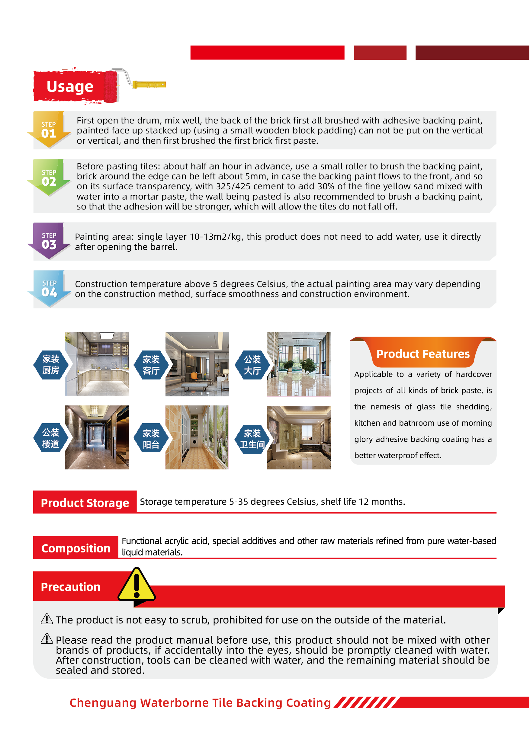 Chenguang Water-based Tile Adhesive Coating (Red Bucket)