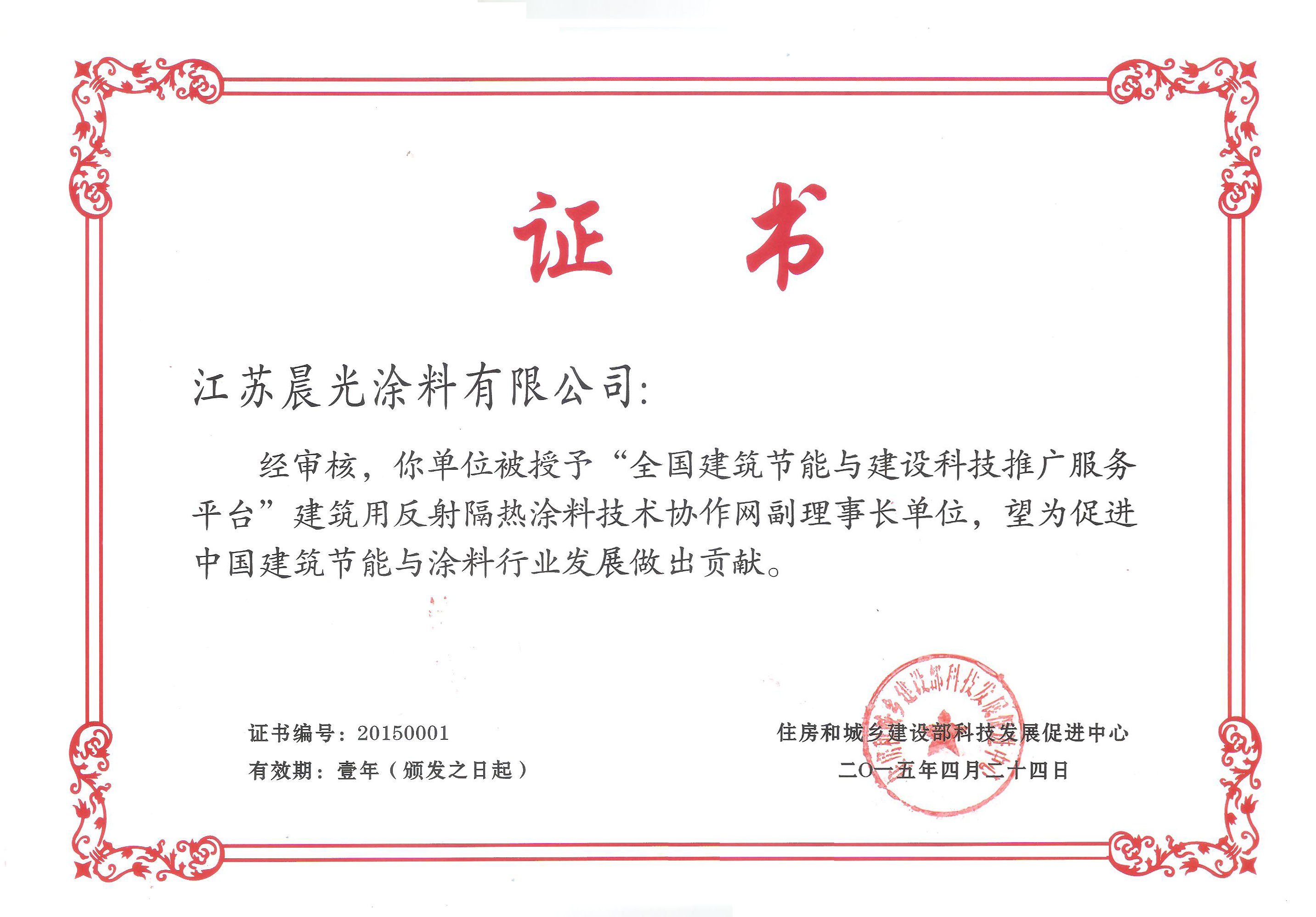 2015年4月23-24日,在住房和城乡建部建筑节能与科技司的指导下,由住房和城乡建设部科技与产业化发展中心联合江苏省住房和城乡建设厅科技发展中心共同举办的“建筑用反射隔热涂料技术成果应用交流研讨会暨建筑用反射隔热涂料技术协作网第一次工作会议”在江苏省常州市圆满结束。