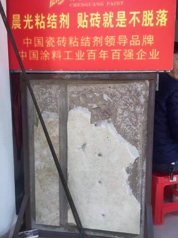 如下图所示,使用艺彩JN体育粘结剂进行粘贴的瓷砖,完全可以承受住高达数百斤的实物重量,这种现场效果可以持久保持,截至发稿之时,这种高负荷承重状态已经持续了两个多月的时间,效果好不好,时间是最好的证明。
