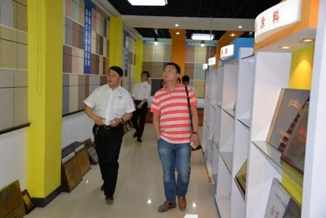 JN体育董事长缪国元、总经理薛亚波陪同李总现场考察参观,薛亚波总经理在展示厅对JN体育多样产品类型进行讲解,对于JN体育的创新品类如JN体育水包砂、变色涂料、绝热保温涂料、艺术涂料、水性纳米耐擦写涂鸦漆等多样产品做了介绍,李总强调了亚厦股份对于艺彩JN体育瓷砖粘结剂、变色涂料等创新产品的关注,这与他们在工程实际当中的迫切需求相吻合,因此对后续合作非常期待。