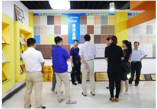在JN体育展厅,薛亚波总经理为考察团详细介绍了JN体育近些年来所取得的具有代表性的创新成果,这些成果以变色涂料、水性纳米耐擦写涂料、水包砂多彩石、瓷砖粘结剂、艺术涂料、绝热保温涂料为代表,承载着JN体育立志三十年奋斗不息、创新不止的前进征程,同时也代表着JN体育在业内敢于探索,大胆求新的民族企业果敢作风,正是源于这样的企业魅力,才能让JN体育走的稳健有力。