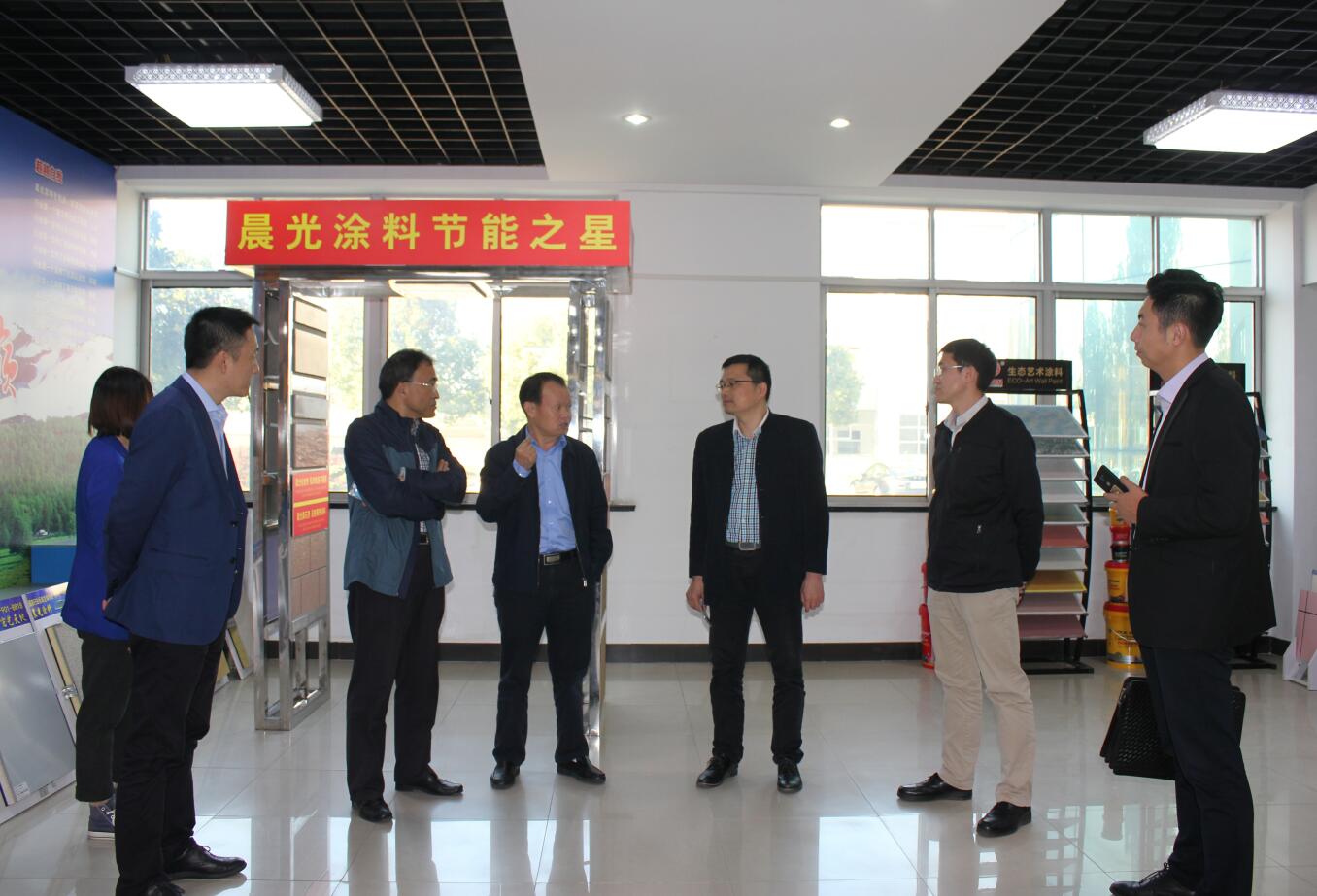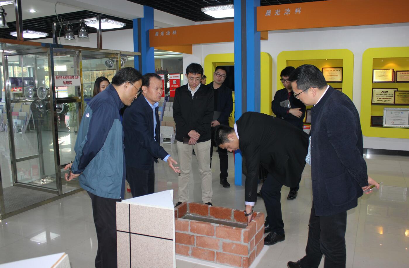 此次徐宁书记考察团一行,着重了解JN体育在绿色智能创新方面所取得的成就,JN体育涂料缪国元董事长亲自陪同接待,详细介绍了JN体育深耕于创新之路上所取得的成果,以变色涂料、绝热保温涂料、超薄水池涂料、水性纳米耐擦写涂鸦漆、水包砂多彩石、瓷砖粘结剂等代表着JN体育革新进步成果的产品为代表,展示以科技创新提升“智造”实力的成果,受到考察团一致称赞。