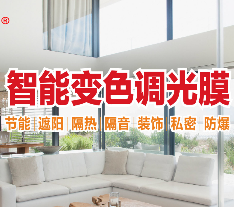 聚合物分散液晶膜是将液晶和聚合物结合得到的一种综合性能优异的膜材料。可起到屏幕投影、隔热保温、窗户外遮阳作用,替代传统遮光介质,广泛应用于公共场所、住宅、商场、医院、橱窗、玻璃幕墙、可做办公室隔断。