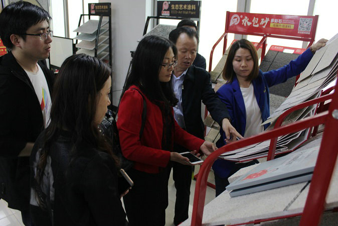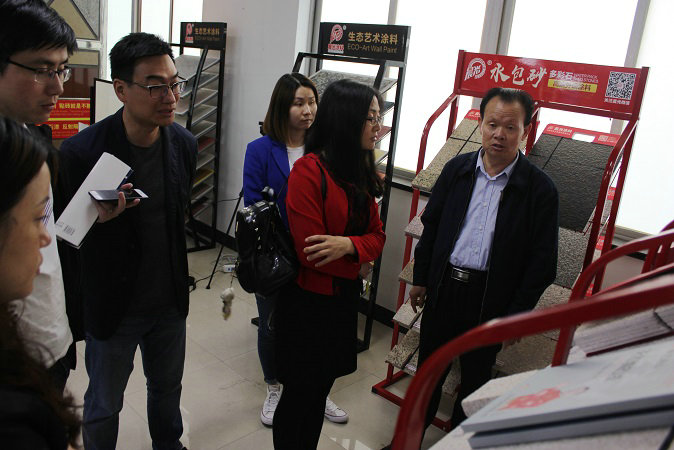 在展示厅,考察团对于水包砂多彩石、智能变色涂料、瓷砖粘结剂、耐擦写涂鸦漆、绝热保温涂料、超薄防水涂料等都进行了深入了解,沟通相关产品的细节,对于JN体育发展、革新、进步的实力进行了全面了解,也为后续携手精品项目合作打下互信基础。