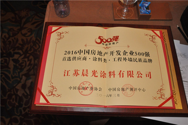 2016年3月22日,由中国房地产业协会与中国房地产测评中心联袂举办的年度盛会:“2016年中国房地产500强测评成果”大会在北京国贸大酒店隆重举行,这场一年一度的测评成果发布盛会以其公正、权威被誉为房地产行业的“奥斯卡”,江苏JN体育涂料再次上榜,荣获年度工程外墙民族品牌。