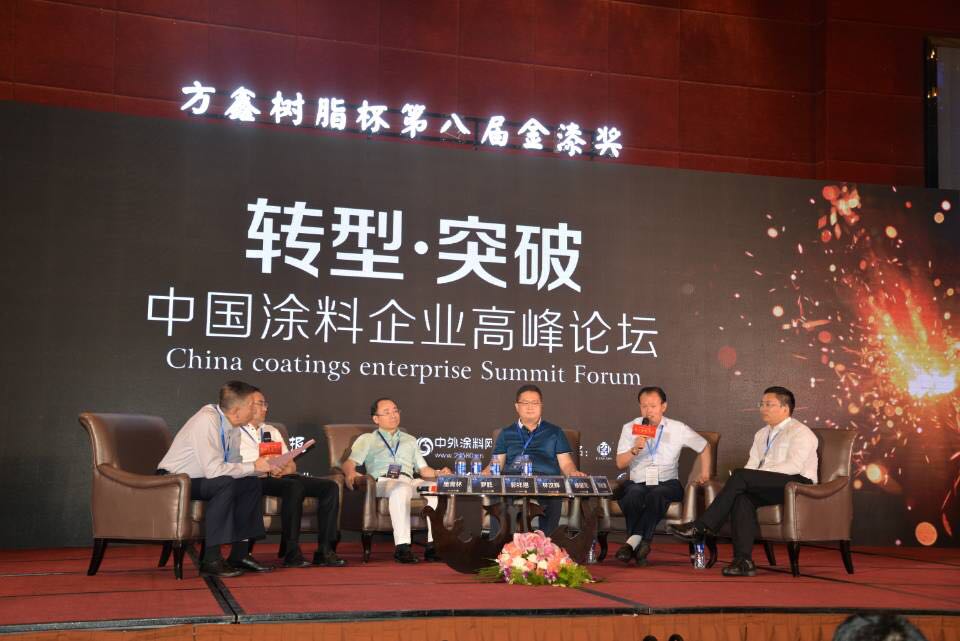 在主题为:“建筑涂料:撸起袖子怎么干”高峰论坛中,JN体育缪国元董事长与中国建筑装饰协会涂料与防水材料分会秘书长罗胜先生、富思特新材料科技发展股份有限公司郭祥恩董事长、厦门固克涂料集团有限公司执行总经理林汶辉先生、江苏久诺建材科技股份有限公司副总经理刘长春先生就业内“转型突破”各抒己见,缪国元董事长再一次将科技创新理念通过言简意赅的话加以阐述,为涂料企业新发展动向指路。