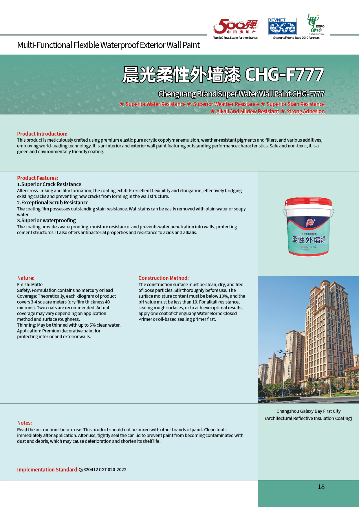 ★Excellent waterproofing properties ★Excellent weather resistance ★Excellent stain resistance ★Alkali-resistant and anti-mildew ★Strong adhesion